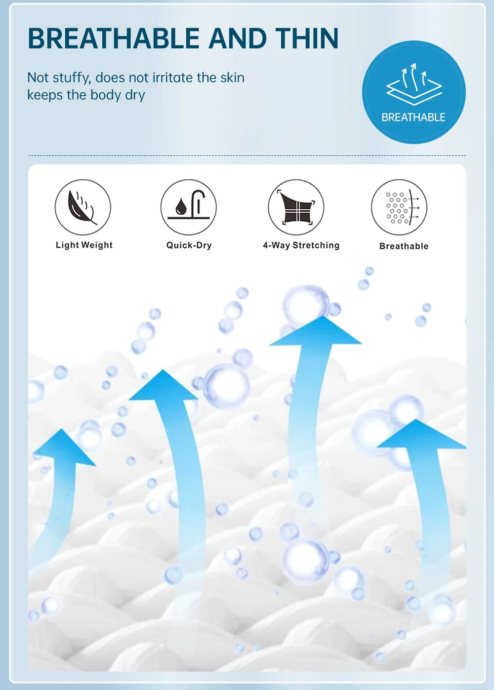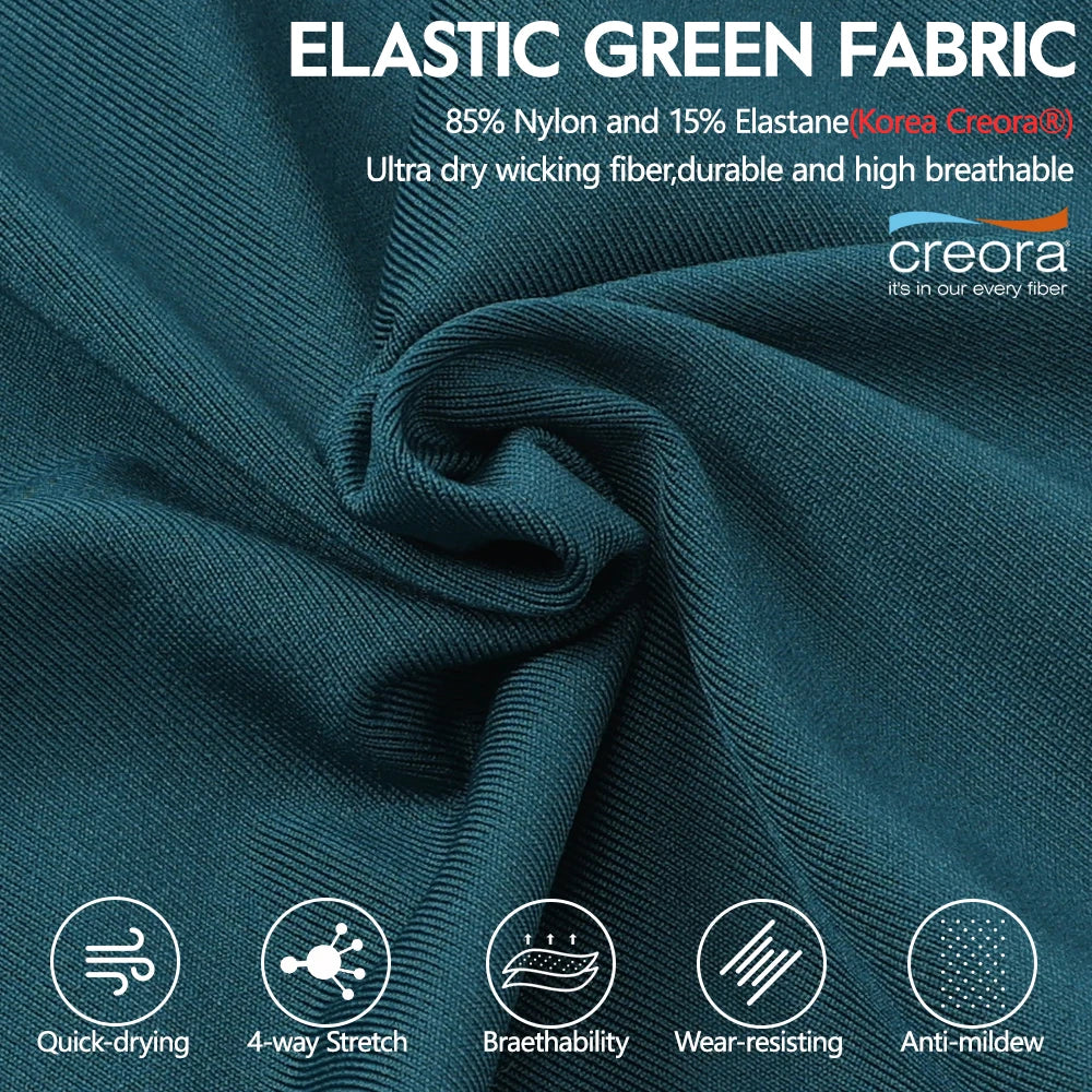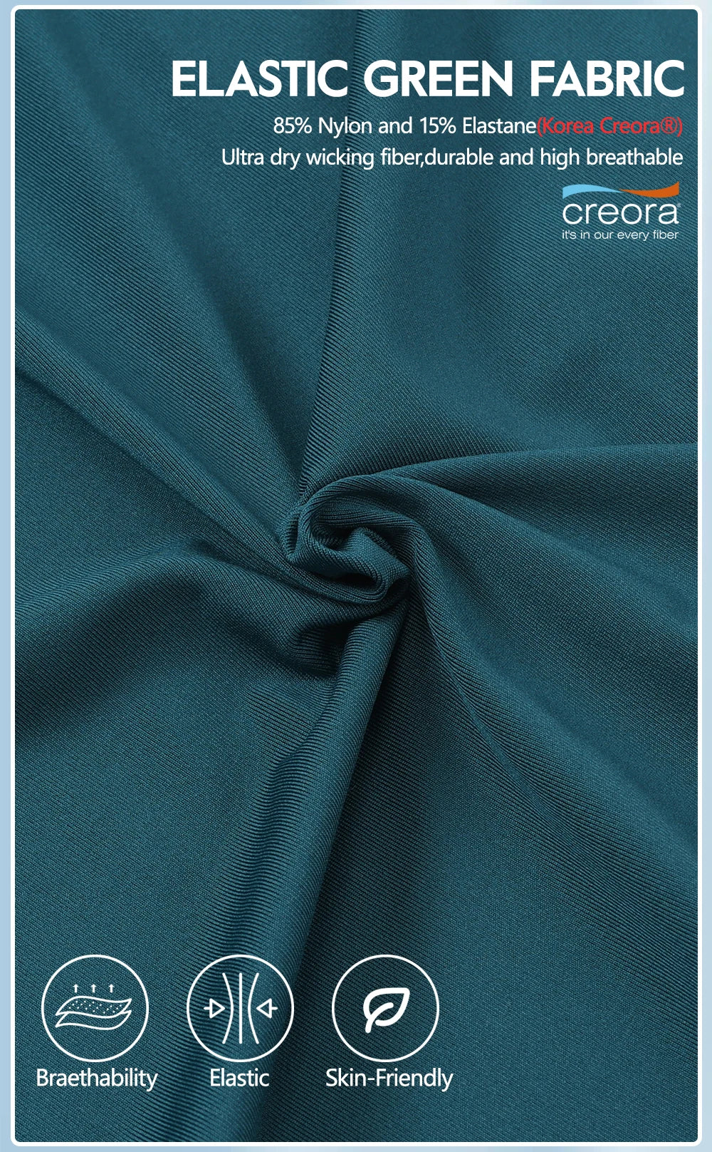 Lightweight and breathable polyester/elastane blend wicks moisture and promotes cooling airflow